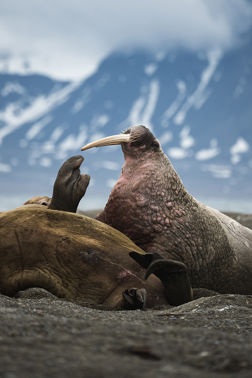 Suspended on the margins of the globe, Svalbard is a mirage of ice run aground at the edge of the Arctic. Here, light doesn’t just illuminate — it sculpts, pierces and reveals the invisible. Summer stretches the days until sleep is forgotten. And when winter returns, another world settles in: one of silence and night. In this far North, man is but a passing guest, tolerated by a world whose slowness and laws he does not understand. Here, wildlife still reigns with dignity. Walruses pile up on the shores like statues from an ancient time. While reindeer move across the rough lichens, an Arctic fox appears and vanishes at once, like a spirit in the mist. And out there, on the drifting ice, polar bears — furtive masters of the fractured pack — remind us that here, it is the silent predator who rules. The rare and stoic flora clings to the cracks and crevices as best it can. What grows here grows nowhere else. Nothing is exuberant, everything is essential. Mosses, dwarf willows, and saxifrages stand like hymns to perseverance on soil winter only reluctantly releases. But this world, which seems frozen in eternity, is crumbling. Under the pressure of global warming, glaciers weep and calve with thunder. The ice cracks and recedes. Permafrosts release their long-held secrets, and bears must swim ever farther to find the ice that will carry them a little longer. Svalbard is a sentinel on borrowed time, a borderland between the before and the after, a fault line between a frozen past and an uncertain future. Here, everything reminds us that the Arctic does not need us — but we, now more than ever, need it. Through the lens, one believes they are capturing an untouched beauty, but it is a beauty on borrowed time. Each image, each light, is a relic. When faced with this sovereign and faltering nature, it quickly becomes clear that to travel here is to bow.